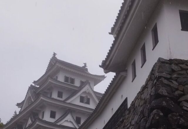 本日4/10(金) お城の状況です。 雨の為、お城から町並みが見えない状態です。 城内までは砂利道が続いている為、滑りやすくなっていますので、ご注意ください。