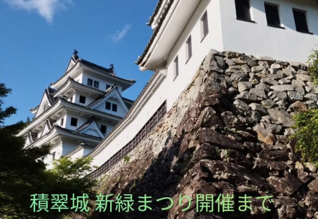 本日4/25(土) お城の状況です。 近頃は寒暖差があり、体調を崩しやすい様です。 体調にはお気をつけ下さい。 さて!積翠城 新緑まつり開催まで後4日となりました!! 4/29(水)〜5/24(日)の期間中には楽しいイベントをご用意しております。 是非ともご来城お待ちしております!