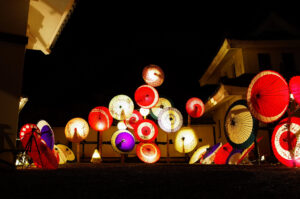 2025.10.27 【和傘ライトアップ】- もみじまつりイベント イベント いつも登城いただきまして誠にありがとうございます。 もみじまつりイベント【和傘ライトアップ】につきましてご案内いたします。 開催日:11月21日(金)~24日(月) 開催時間:日没(17時頃)~20時 ※最終の入城受付は19時45分まで 会場:天守前広場 地元の有志グループと一緒に創り上げた100本以上の和傘と灯りの展示で皆様をお出迎えいたします。 期間中は20時まで夜間開城をしております。 周囲が暗い為、足元に注意してお越しください。 よろしくお願いいたします。