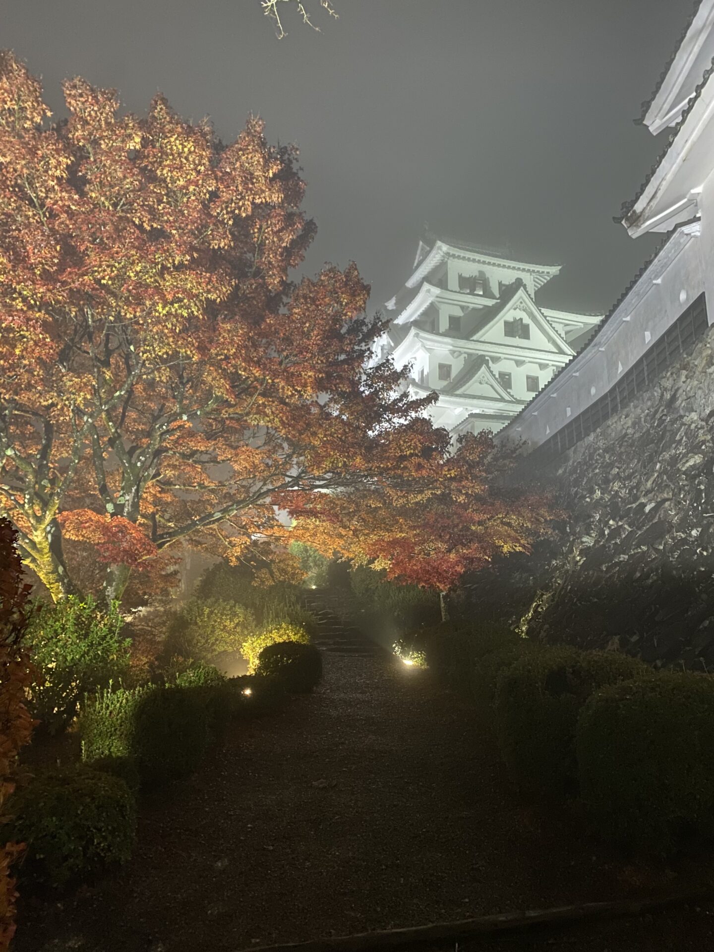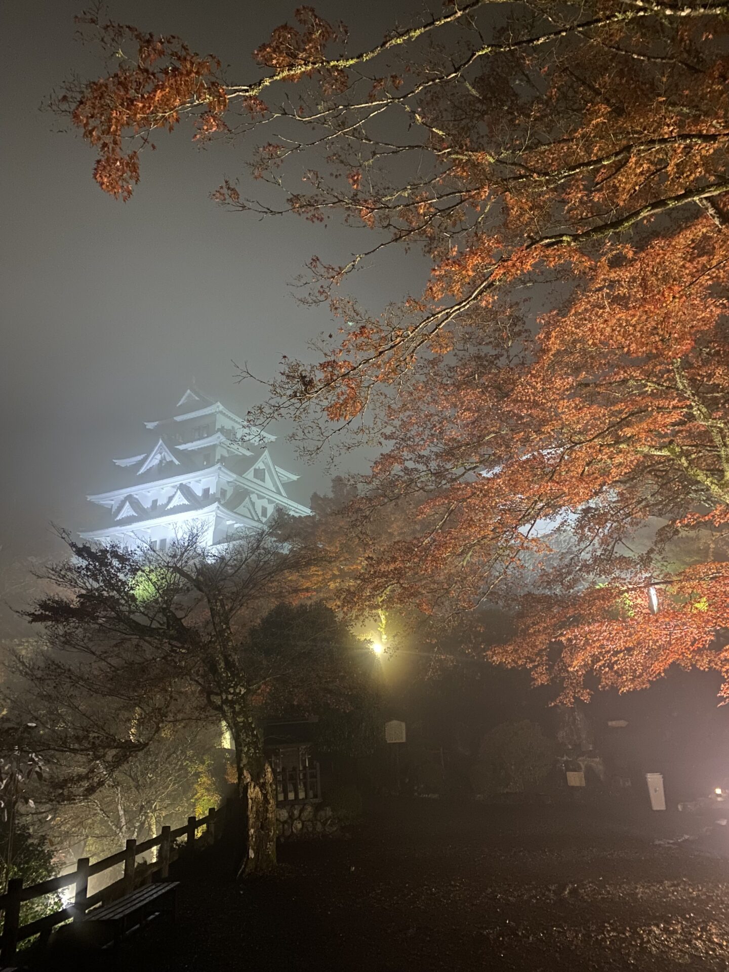 今夜の郡上八幡城は霧の中🌫️いつもと違う幻想的な雰囲気でした🏯🍁🌫️