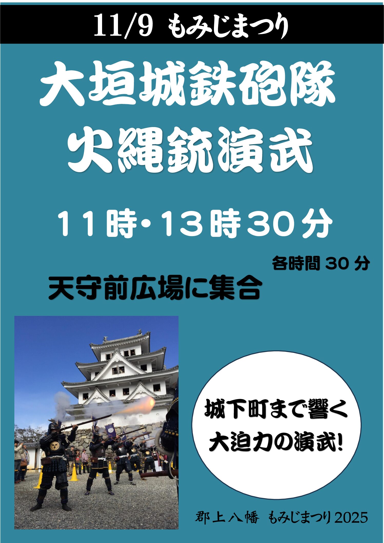 イベントいつも登城いただきまして誠にありがとうございます。 もみじまつりイベント【大垣城鉄砲隊演武】につきましてご案内いたします。 開催日:11月9日(日) 開催時間:11時・13時30分 (各30分) 会場:天守前広場 本物の火縄銃を使...続きを見る